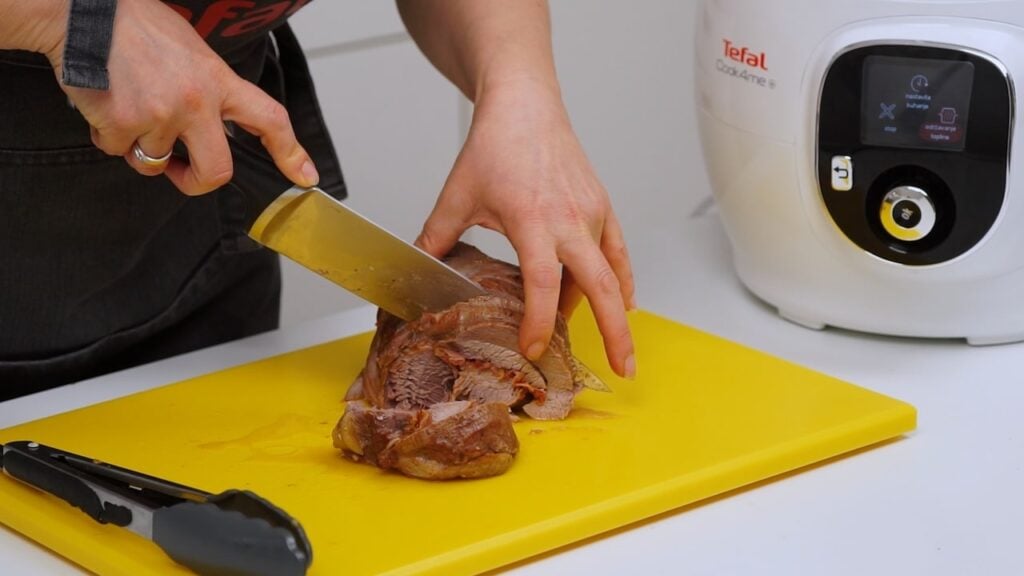 Kako za blagdane često znamo biti rastrgani u obavezama oko svih detalja i priprema, lijepo je kada si tu užurbanost možemo olakšati. I zato je tu Tefal Cook4Me u kojemu se vrlo jednostavno i brzo može pripremiti kompletni blagdanski ručak – i glavno jelo i desert! Tako sam odlučila u njemu napraviti malo drugačiju puricu s mlincima. Twist je učinio da sam dobila savršeno blagdansko pečenje – rolani pureći zabatak koji sam punila pestom i pancetom, a koji se savršeno lijepo ispkao u Cook4Me-u. Jer, puretini inače treba dosta duga termička obrada, pogotovo kada se radi o ovako većem i debljem komadu mesa kao što je rolani pureći zabatak. No, Cook4Me kuha pod pritiskom nakon prvotnog zapecavanja i rezultat je savršeno mekano meso!