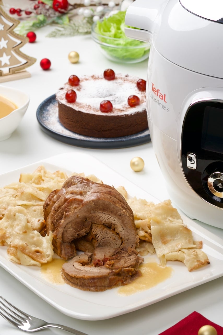 Kako za blagdane često znamo biti rastrgani u obavezama oko svih detalja i priprema, lijepo je kada si tu užurbanost možemo olakšati. I zato je tu Tefal Cook4Me u kojemu se vrlo jednostavno i brzo može pripremiti kompletni blagdanski ručak – i glavno jelo i desert! Tako sam odlučila u njemu napraviti malo drugačiju puricu s mlincima. Twist je učinio da sam dobila savršeno blagdansko pečenje – rolani pureći zabatak koji sam punila pestom i pancetom, a koji se savršeno lijepo ispkao u Cook4Me-u. Jer, puretini inače treba dosta duga termička obrada, pogotovo kada se radi o ovako većem i debljem komadu mesa kao što je rolani pureći zabatak. No, Cook4Me kuha pod pritiskom nakon prvotnog zapecavanja i rezultat je savršeno mekano meso!