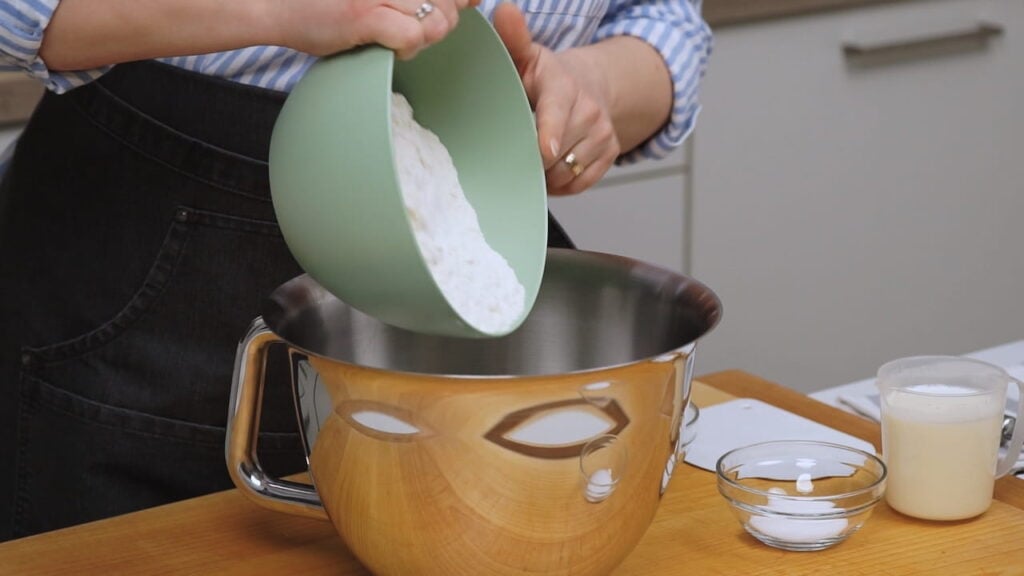 - Za dizano tijesto pomiješati sve suhe sastojke. Potom uliti toplo mlijeko pa umijesiti tijesto.