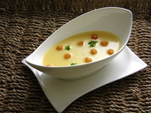 Poslužiti uz krckave kuglice za juhu ili popržene kockice kruha.