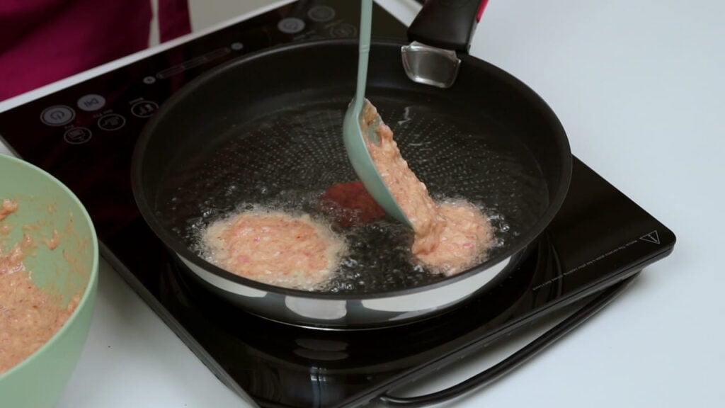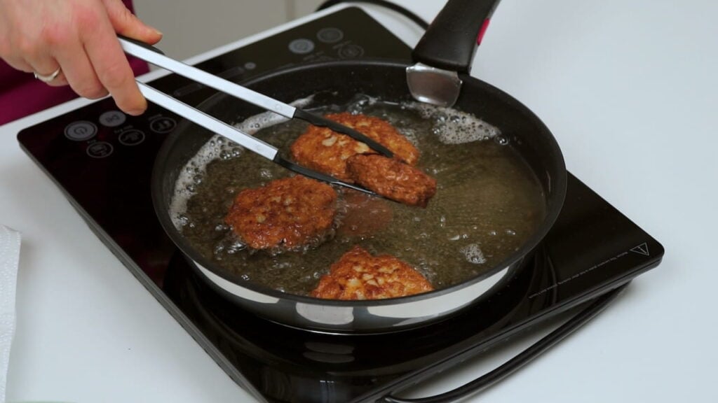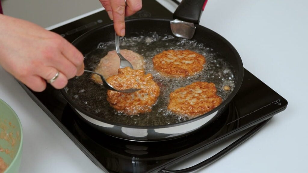 - Potom žlicom vaditi količinu koliko stane u žlicu i spuštati u vrelo ulje. Kada se spuste u ulje, malo ih žlicom spljoštiti, pa pržiti s jedne i sa druge strane dok ne porumene.