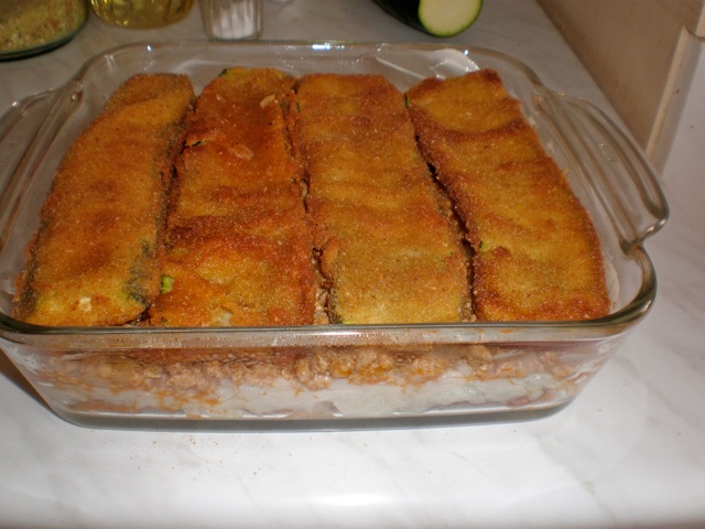 Ne znam da li i netko od vas ima sličan problem, ali kod mene u hladnjaku tikvice kao da same rastu 😀 Baka nam svaki dan samo nadopunjava zalihe novim svježe ubranim tikvicama i nikako da se potroše. Jedan dio naribanih tikvica sam pospremila u zamrzivač (dobro će doći kasnije kada se sa nostalgijom budem prisjećala ovog povrćem bogatog doba) a od drugog dijela tikvica sam odlučila smisliti još nekoliko finih ljetnih jela. Budući da pohane tikvice obožavam, sasvim mi je prirodnan slijed bio ova musaka od pohanih tikvica 🙂