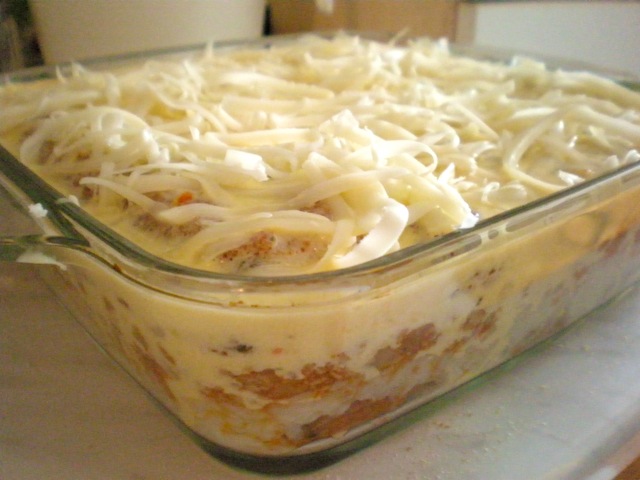 - Za preljev musake: 2 jaja i kiselo vrhnje izraditi pjenjačom, dodati začine.